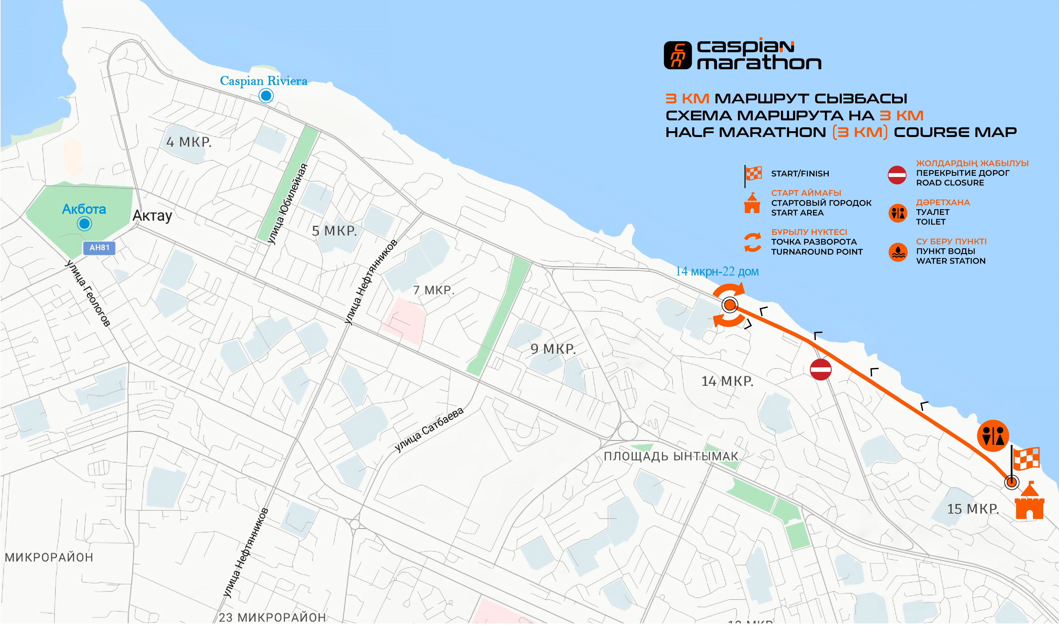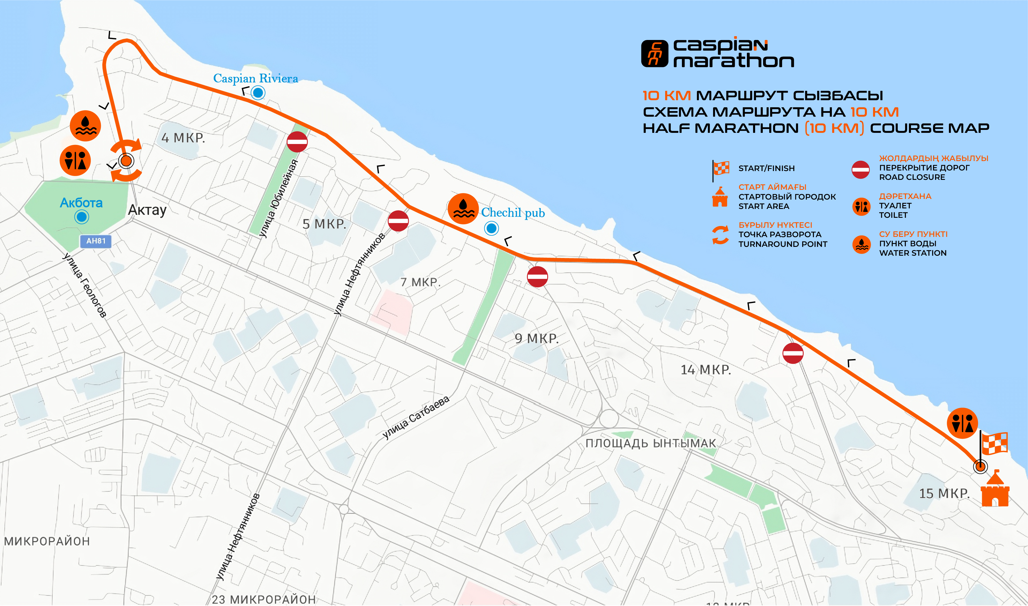 Aktau Half-Marathon 2026 аясында келесі қашықтықтар ұсынылады:
